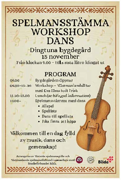 Arrangör: Västmanlands Spelmansförbund i samarbete med Västerås Spelmansgille och studieförbundet Bilda.